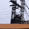 a silly exploding chicken on a transformer. it looks as if it disappears